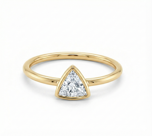 The Celeste Trigon offers versatile customization across precious metals and gemstones. Select from 18k or 22k yellow gold, or opt for silver paired with cubic zirconia for accessible luxury. Each configuration preserves the ring's refined triangular geometry while allowing you to tailor both material quality and visual impact to your individual style.